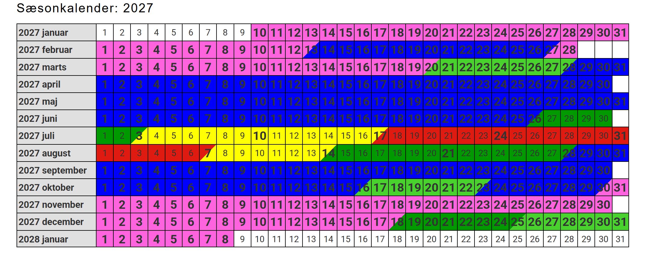 Sæsonkalender 2027